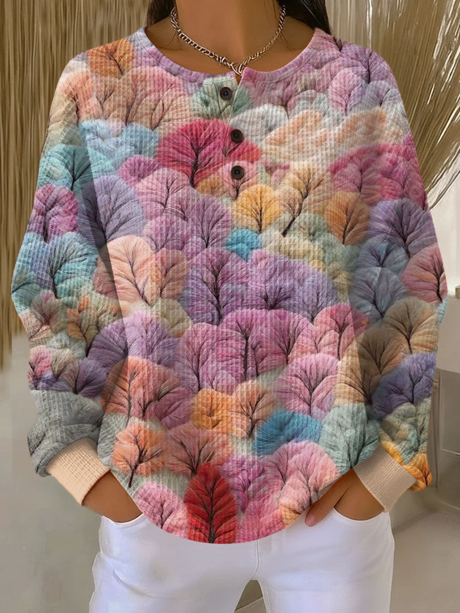 Women's Colorful Christmas Tree Pattern Art Print Casual Cotton Shirt